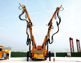 2018年10月,中鐵裝備三 臂三籃拱架安裝機下線