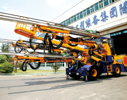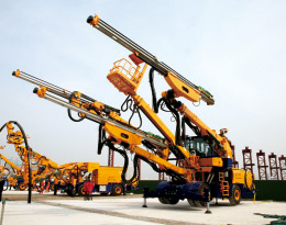 2017年8月,國內首臺具有完 全自主知識產權的電腦導向三 臂鑿巖臺車下線
