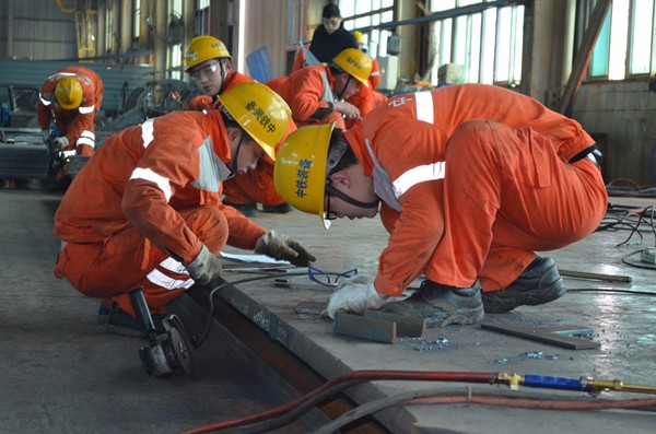 此次技能大賽按照工種范圍包括鉗工、焊工、車工、電工,以30%的理論成績和70%的實際操作成績決出名次。為確保比武不影響正常生產,技術比武小組成員根據參賽選手的工作地點不同,采取分點、分時等多種方式進行考核,確保技術比武活動公平公正進行。其中,實際操作比賽從上午9點開始,各位選手各施所長,爭分奪秒,一絲不茍地完成每一個環節,就連休息的時間也顧不上,生怕落在其他人后面。由于選手們實力相當,每組比賽都格外激烈。